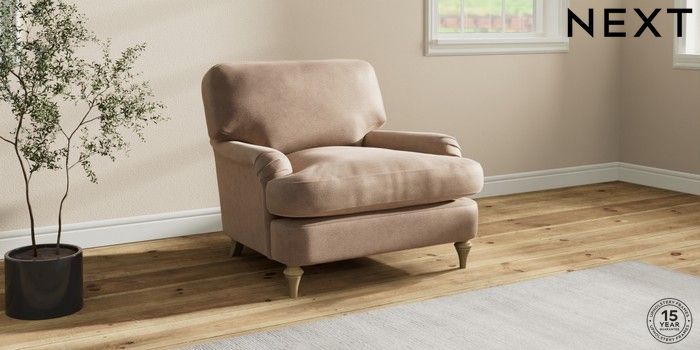 7.0.3 Buy Sadie Deep Relaxed Sit Armchair Luxe Chenille Mid Natural High Slim Turned - Light from the Next UK online shop Click here to use our accessible website