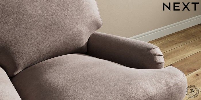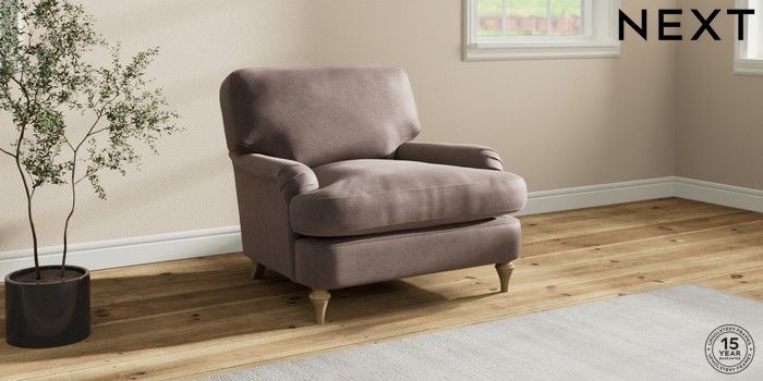 7.0.3 Buy Sadie Deep Relaxed Sit Armchair Luxe Chenille Mink Brown High Slim Turned - Light from the Next UK online shop Click here to use our accessible website
