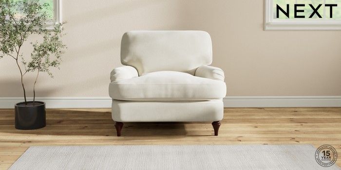 7.0.3 Buy Sadie Deep Relaxed Sit Armchair Luxe Chenille Oyster High Slim Turned - Dark Brown from the Next UK online shop Click here to use our accessible website