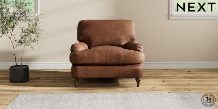 6.12.1 Buy Sadie Deep Relaxed Sit Armchair Monza Faux Leather Easy Clean Chestnut Brown High Slim Turned - Mid from the Next UK online shop Click here to use our accessible website