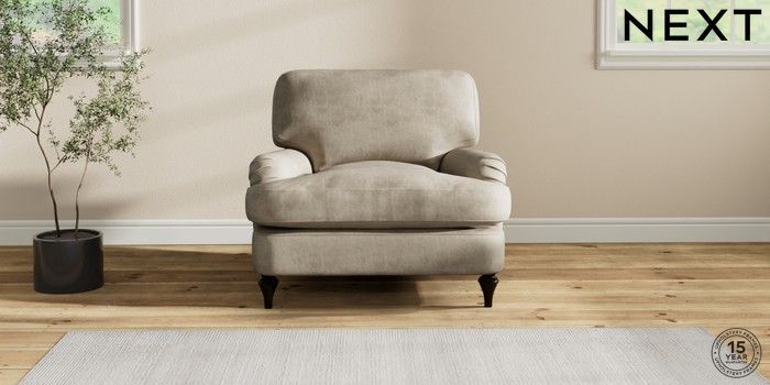 6.12.1 Buy Sadie Deep Relaxed Sit Armchair Monza Faux Leather Easy Clean Mink Brown High Slim Turned - Dark from the Next UK online shop Click here to use our accessible website