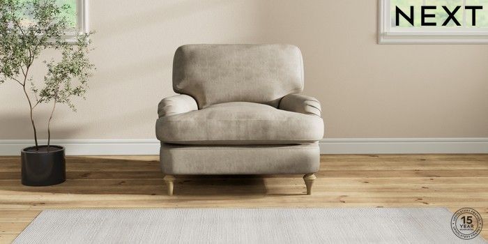6.12.1 Buy Sadie Deep Relaxed Sit Armchair Monza Faux Leather Easy Clean Mink Brown High Slim Turned - Light from the Next UK online shop Click here to use our accessible website