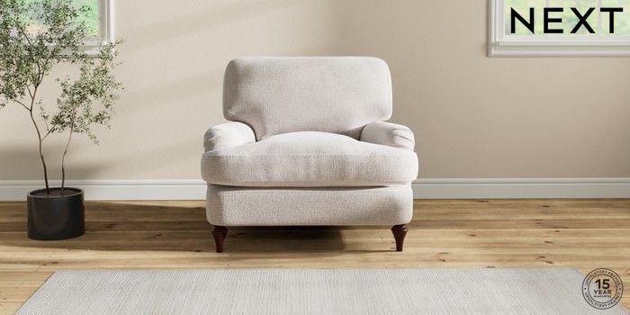 7.2.6 Buy Sadie Deep Relaxed Sit Armchair Multi Weave Oyster High Slim Turned - Dark Brown from the Next UK online shop Click here to use our accessible website
