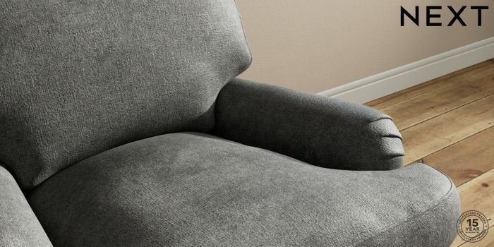 7.0.3 Buy Sadie Deep Relaxed Sit Armchair Plush Chenille Dark Grey High Slim Turned - Dark Brown from the Next UK online shop Click here to use our accessible website