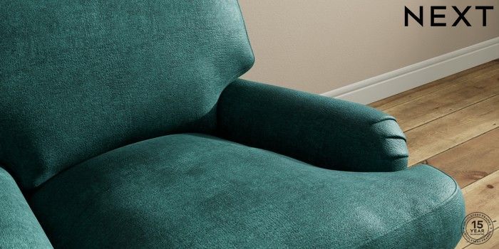 7.0.3 Buy Sadie Deep Relaxed Sit Armchair Plush Chenille Dark Teal Green High Slim Turned - Mid from the Next UK online shop Click here to use our accessible website