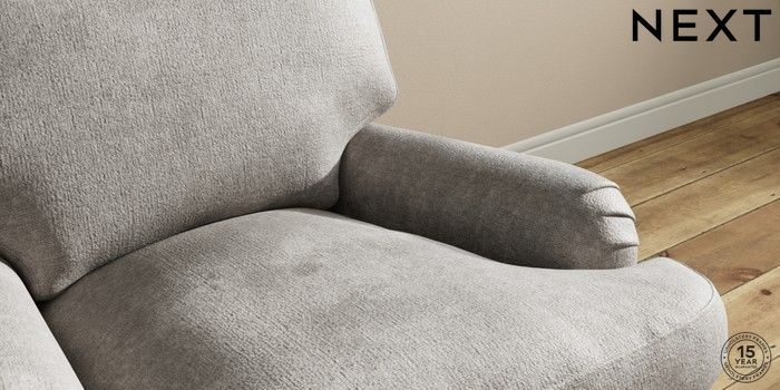 7.0.3 Buy Sadie Deep Relaxed Sit Armchair Plush Chenille Light Grey High Slim Turned - Dark from the Next UK online shop Click here to use our accessible website