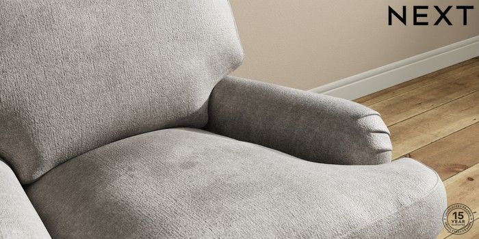 7.0.3 Buy Sadie Deep Relaxed Sit Armchair Plush Chenille Light Grey High Slim Turned - Light from the Next UK online shop Click here to use our accessible website