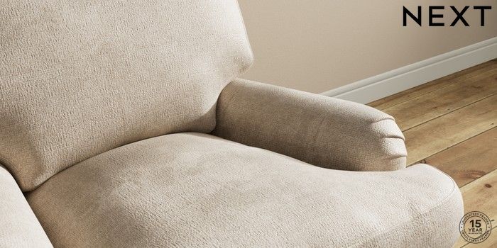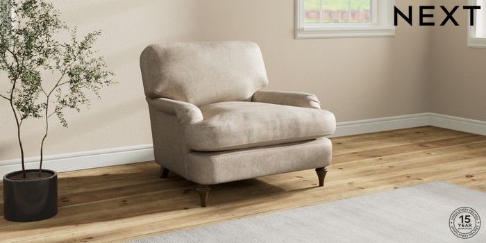7.0.3 Buy Sadie Deep Relaxed Sit Armchair Plush Chenille Light Natural High Slim Turned - Mid from the Next UK online shop Click here to use our accessible website