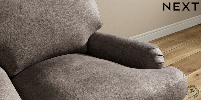 7.0.3 Buy Sadie Deep Relaxed Sit Armchair Plush Chenille Mink Brown High Slim Turned - Dark from the Next UK online shop Click here to use our accessible website