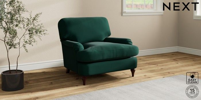 7.0.3 Buy Sadie Deep Relaxed Sit Armchair Plush Velvet Easy Clean Bottle Green High Slim Turned - Dark Brown from the Next UK online shop Click here to use our accessible website