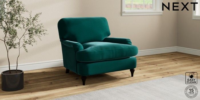 7.0.3 Buy Sadie Deep Relaxed Sit Armchair Plush Velvet Easy Clean Juniper Green High Slim Turned - Dark from the Next UK online shop Click here to use our accessible website