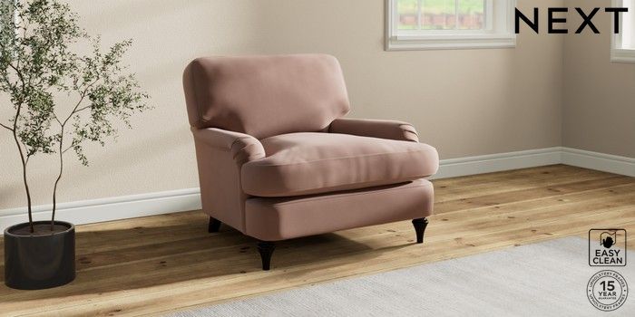 7.0.3 Buy Sadie Deep Relaxed Sit Armchair Plush Velvet Easy Clean Mid Natural High Slim Turned - Dark from the Next UK online shop Click here to use our accessible website