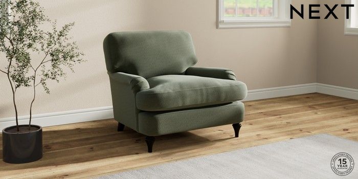 7.0.3 Buy Sadie Deep Relaxed Sit Armchair Relaxed Linen Look Dark Green High Slim Turned - Dark from the Next UK online shop Click here to use our accessible website