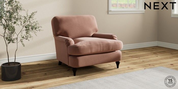 7.0.3 Buy Sadie Deep Relaxed Sit Armchair Relaxed Linen Look Light Rust Brown High Slim Turned - Dark from the Next UK online shop Click here to use our accessible website