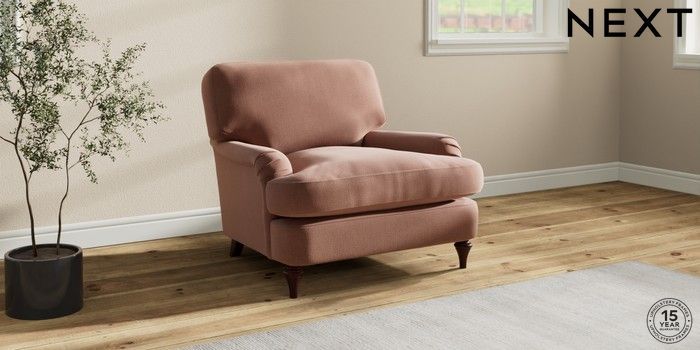 7.0.3 Buy Sadie Deep Relaxed Sit Armchair Relaxed Linen Look Light Rust Brown High Slim Turned - Dark Brown from the Next UK online shop Click here to use our accessible website
