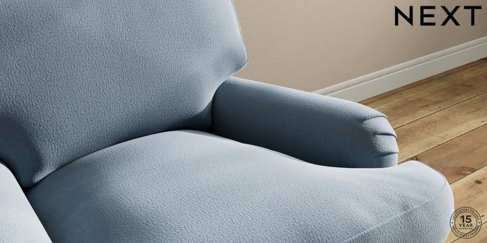 7.0.3 Buy Sadie Deep Relaxed Sit Armchair Relaxed Linen Look Mid Blue High Slim Turned - Dark Brown from the Next UK online shop Click here to use our accessible website