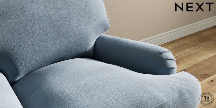 7.0.3 Buy Sadie Deep Relaxed Sit Armchair Relaxed Linen Look Mid Blue High Slim Turned - Light from the Next UK online shop Click here to use our accessible website