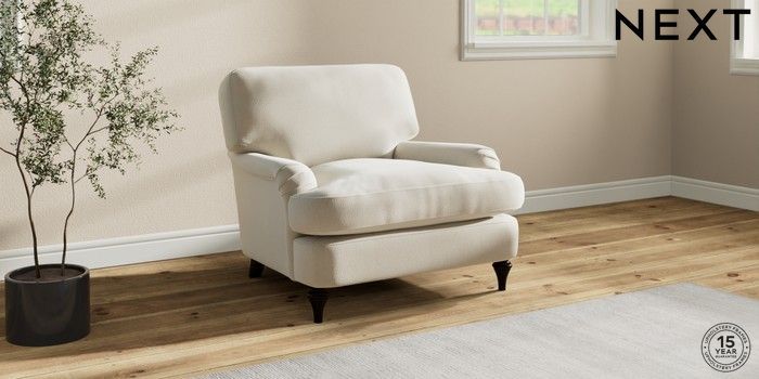7.0.3 Buy Sadie Deep Relaxed Sit Armchair Relaxed Linen Look Oyster High Slim Turned - Dark from the Next UK online shop Click here to use our accessible website