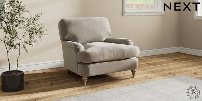 7.0.3 Buy Sadie Deep Relaxed Sit Armchair Ripple Chenille Light Natural High Slim Turned - Light from the Next UK online shop Click here to use our accessible website