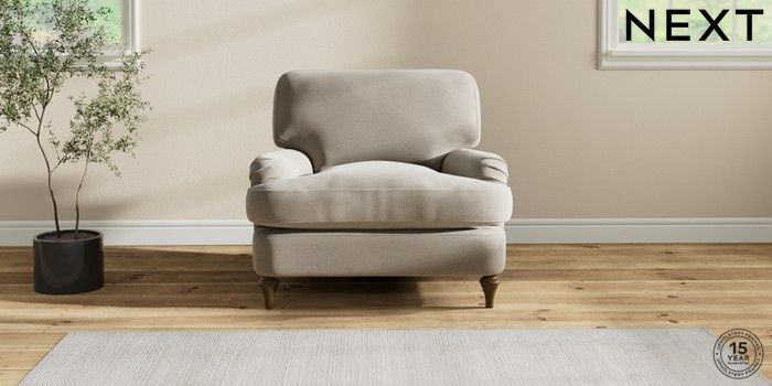 6.12.1 Buy Sadie Deep Relaxed Sit Armchair Ripple Chenille Light Natural High Slim Turned - Mid from the Next UK online shop Click here to use our accessible website