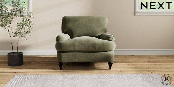 6.12.1 Buy Sadie Deep Relaxed Sit Armchair Ripple Chenille Mid Moss Green High Slim Turned - Dark from the Next UK online shop Click here to use our accessible website