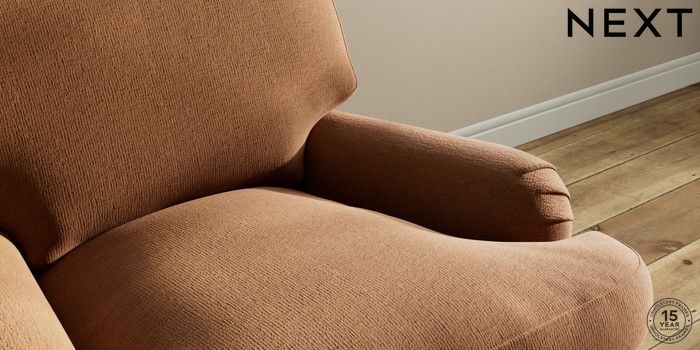 7.0.3 Buy Sadie Deep Relaxed Sit Armchair Ripple Chenille Mid Rust Brown High Slim Turned - Dark from the Next UK online shop Click here to use our accessible website