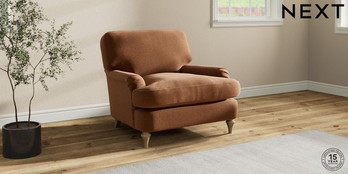7.0.3 Buy Sadie Deep Relaxed Sit Armchair Ripple Chenille Mid Rust Brown High Slim Turned - Light from the Next UK online shop Click here to use our accessible website