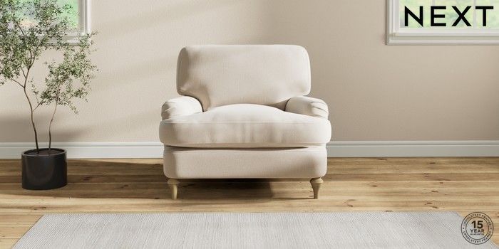 6.12.1 Buy Sadie Deep Relaxed Sit Armchair Studio Chenille Oyster High Slim Turned - Light from the Next UK online shop Click here to use our accessible website