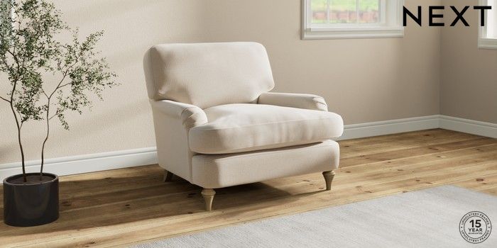 7.0.3 Buy Sadie Deep Relaxed Sit Armchair Studio Chenille Oyster High Slim Turned - Light from the Next UK online shop Click here to use our accessible website