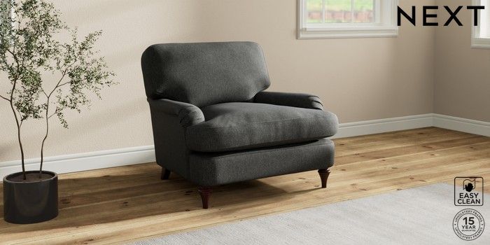 7.0.3 Buy Sadie Deep Relaxed Sit Armchair Tweedy Blend Easy Clean Charcoal Grey High Slim Turned - Dark Brown from the Next UK online shop Click here to use our accessible website