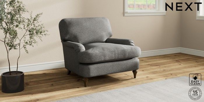 7.0.3 Buy Sadie Deep Relaxed Sit Armchair Tweedy Blend Easy Clean Dark Grey High Slim Turned - Mid from the Next UK online shop Click here to use our accessible website