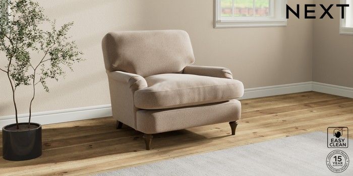 7.0.3 Buy Sadie Deep Relaxed Sit Armchair Tweedy Blend Easy Clean Light Dove Natural High Slim Turned - Mid from the Next UK online shop Click here to use our accessible website
