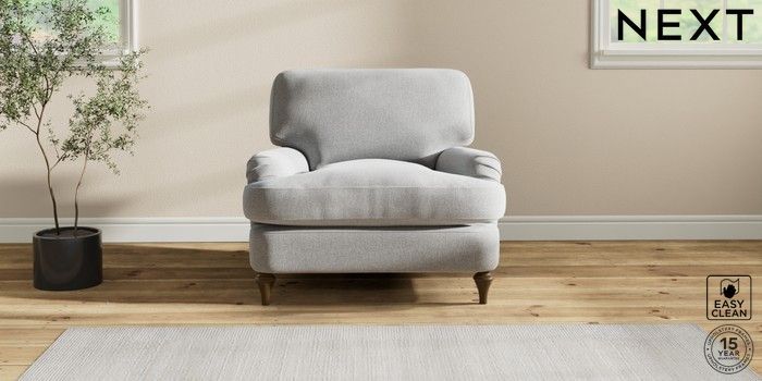 6.12.1 Buy Sadie Deep Relaxed Sit Armchair Tweedy Blend Easy Clean Light Silver Grey High Slim Turned - Mid from the Next UK online shop Click here to use our accessible website