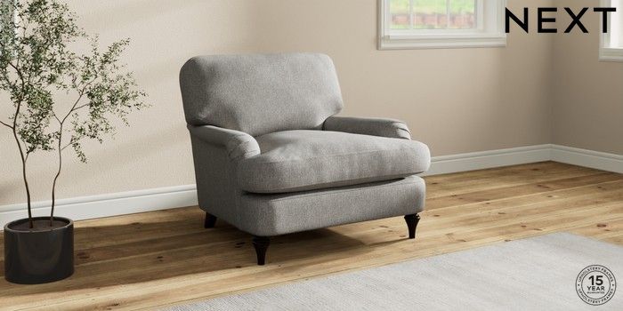 7.0.3 Buy Sadie Deep Relaxed Sit Armchair Tweedy Chenille Mid Grey High Slim Turned - Dark from the Next UK online shop Click here to use our accessible website