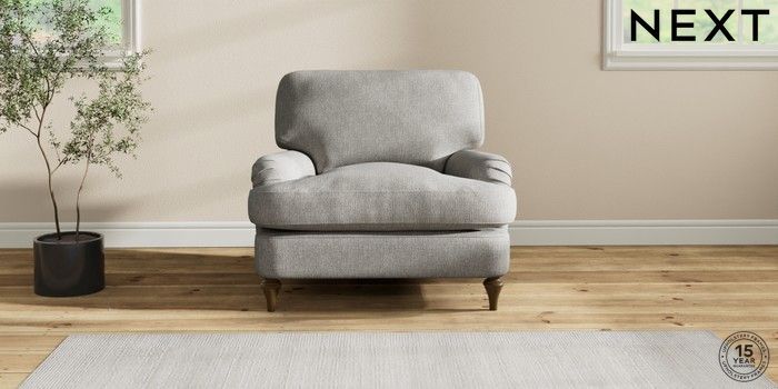 6.12.1 Buy Sadie Deep Relaxed Sit Armchair Tweedy Chenille Mid Grey High Slim Turned - Mid from the Next UK online shop Click here to use our accessible website