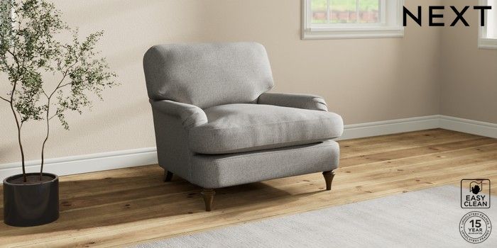 7.0.3 Buy Sadie Deep Relaxed Sit Armchair Woven Chenille Easy Clean Light Grey High Slim Turned - Mid from the Next UK online shop Click here to use our accessible website