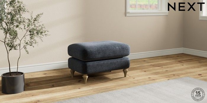 7.0.3 Buy Sadie Deep Relaxed Sit Footstool Boucle Chenille Dark Slate Blue High Slim Turned - Light from the Next UK online shop Click here to use our accessible website