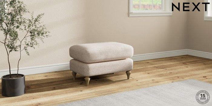 7.0.3 Buy Sadie Deep Relaxed Sit Footstool Boucle Chenille Oyster High Slim Turned - Light from the Next UK online shop Click here to use our accessible website