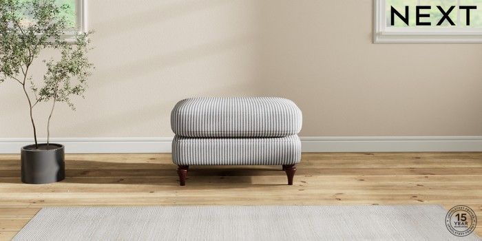 6.12.1 Buy Sadie Deep Relaxed Sit Footstool Chenille Stripe Slate Blue High Slim Turned - Dark Brown from the Next UK online shop Click here to use our accessible website
