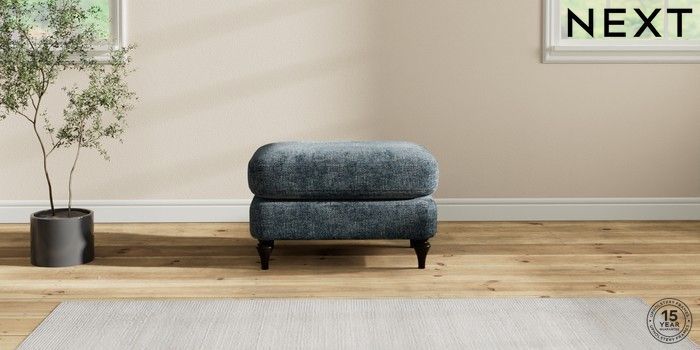 6.12.1 Buy Sadie Deep Relaxed Sit Footstool Chunky Chenille Dark Navy Blue High Slim Turned - Dark from the Next UK online shop Click here to use our accessible website