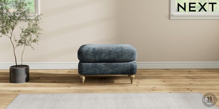 6.12.1 Buy Sadie Deep Relaxed Sit Footstool Chunky Chenille Dark Navy Blue High Slim Turned - Light from the Next UK online shop Click here to use our accessible website