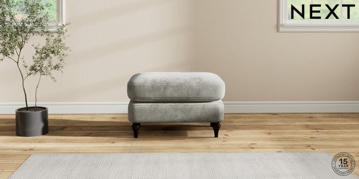 6.12.1 Buy Sadie Deep Relaxed Sit Footstool Chunky Chenille Light Grey High Slim Turned - Dark from the Next UK online shop Click here to use our accessible website