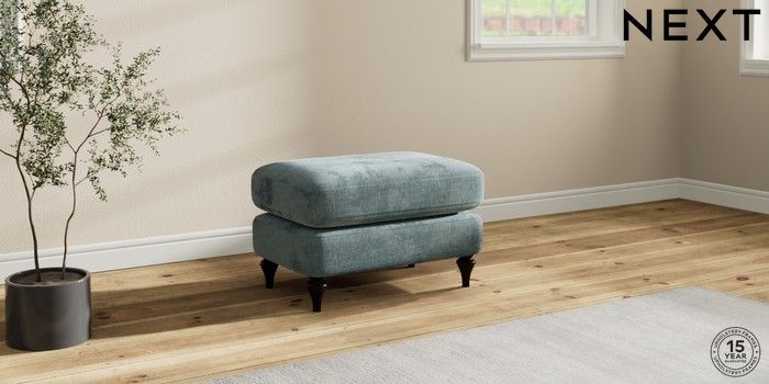 7.0.3 Buy Sadie Deep Relaxed Sit Footstool Chunky Chenille Light Teal Green High Slim Turned - Dark from the Next UK online shop Click here to use our accessible website