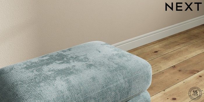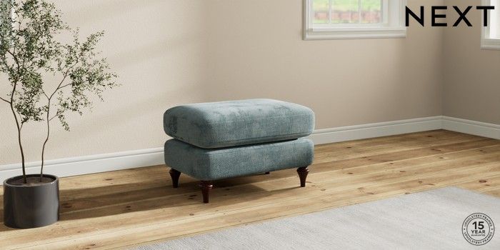 7.0.3 Buy Sadie Deep Relaxed Sit Footstool Chunky Chenille Light Teal Green High Slim Turned - Dark Brown from the Next UK online shop Click here to use our accessible website