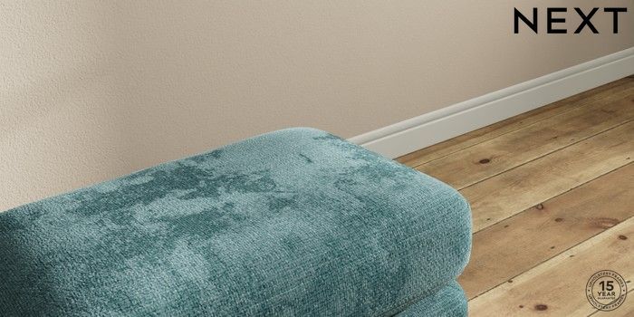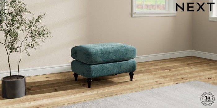 7.0.3 Buy Sadie Deep Relaxed Sit Footstool Chunky Chenille Mid Teal Green High Slim Turned - Dark from the Next UK online shop Click here to use our accessible website
