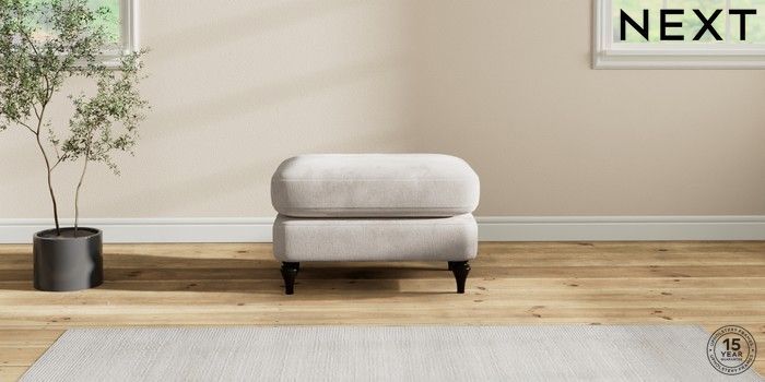 6.12.1 Buy Sadie Deep Relaxed Sit Footstool Chunky Chenille Oyster High Slim Turned - Dark from the Next UK online shop Click here to use our accessible website