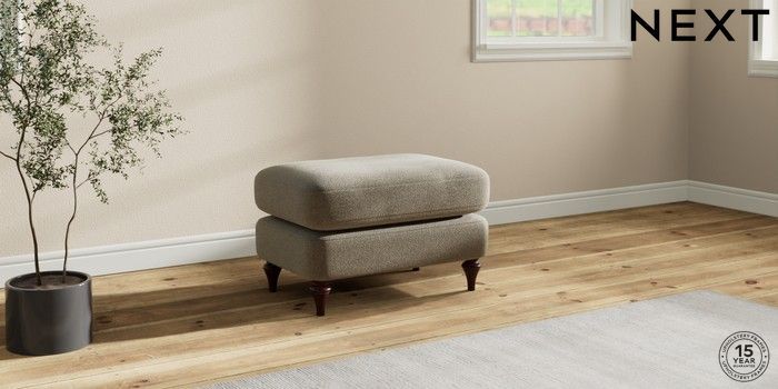 7.0.3 Buy Sadie Deep Relaxed Sit Footstool Chunky Marl Light Olive Green High Slim Turned - Dark Brown from the Next UK online shop Click here to use our accessible website