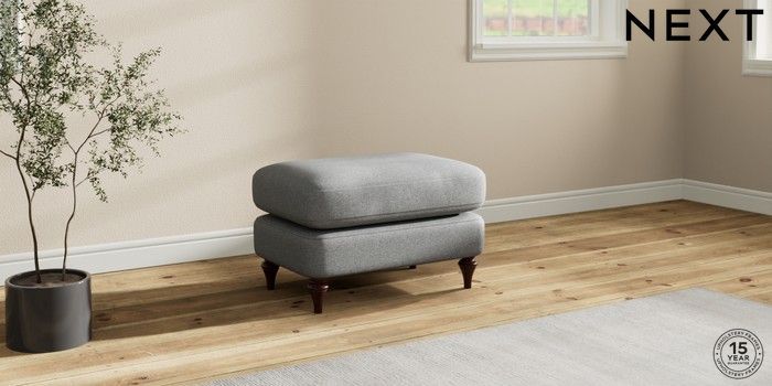 7.0.3 Buy Sadie Deep Relaxed Sit Footstool Chunky Weave Mid Grey High Slim Turned - Dark Brown from the Next UK online shop Click here to use our accessible website