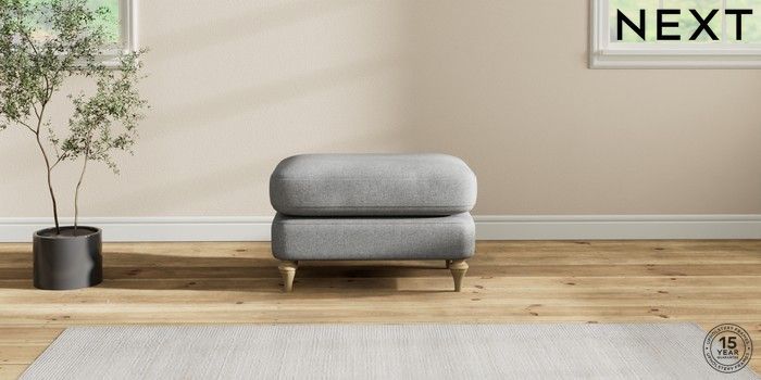 6.12.1 Buy Sadie Deep Relaxed Sit Footstool Chunky Weave Mid Grey High Slim Turned - Light from the Next UK online shop Click here to use our accessible website