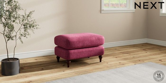 7.0.3 Buy Sadie Deep Relaxed Sit Footstool Cotswold Chenille Dark Raspberry Pink High Slim Turned - Dark Brown from the Next UK online shop Click here to use our accessible website